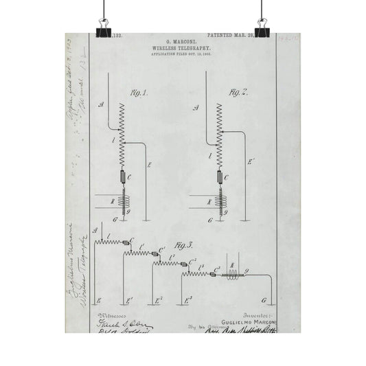Patent drawing - for G. Marconi's Wireless Telegraphy Public domain image High Quality Matte Wall Art Poster for Home, Office, Classroom