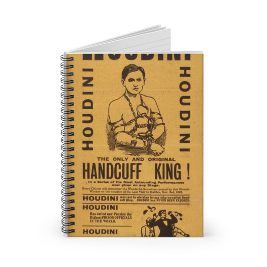 Special starring record engagement of the world's famous jail breaker, Houdini the only and original handcuff king. Spiral Bound Ruled Notebook with Printed Cover
