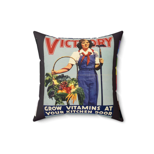War gardens for victory--Grow vitamins at your kitchen door / lithographed by the Stecher-Traung Lithograph Corporation, Rochester, New York. Decorative Accent Square Pillow
