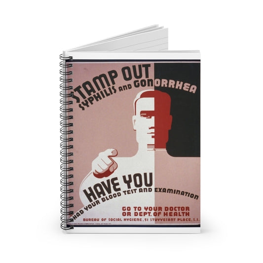 Stamp out syphilis and gonorrhea Have you had your blood test and examination : Go to your doctor or Dept. of Health. Spiral Bound Ruled Notebook with Printed Cover