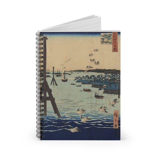 Shibaura no fūkei, Ando Hiroshige - Ukiyo e print Spiral Bound Ruled Notebook with Printed Cover