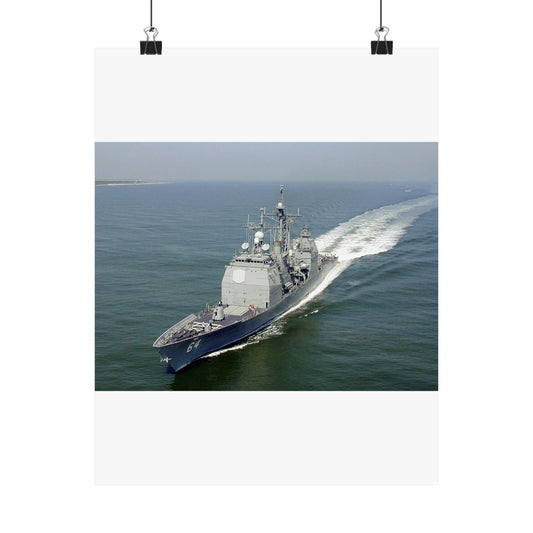 Aerial port bow view of the guided missile cruiser USS GETTYSBURG (CG 64) underway off Fort Story, Virginia High Quality Matte Wall Art Poster for Home, Office, Classroom