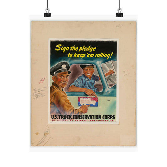 Sign the pledge to keep'em rolling! U.S. Truck Conservation Corps - U.S. Office of Defense Transportation High Quality Matte Wall Art Poster for Home, Office, Classroom