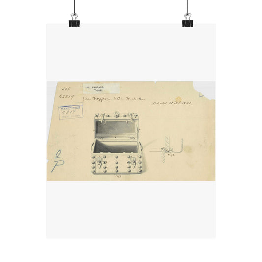 Patent drawing - Drawing of a Traveling Trunk Public domain image High Quality Matte Wall Art Poster for Home, Office, Classroom