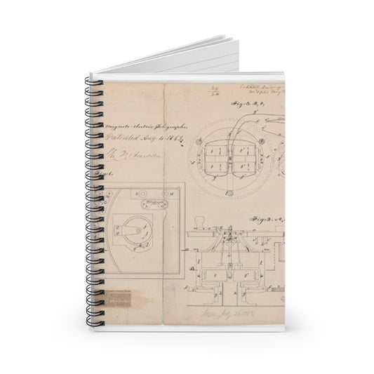Patent drawing - Drawing of Improvements in Magneto-electric Telegraphs Public domain image Spiral Bound Ruled Notebook with Printed Cover