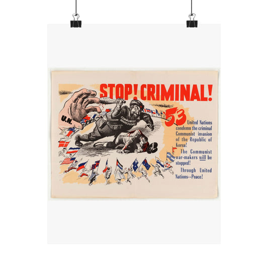 Stop Criminal!, Cold War American Propaganda poster High Quality Matte Wall Art Poster for Home, Office, Classroom