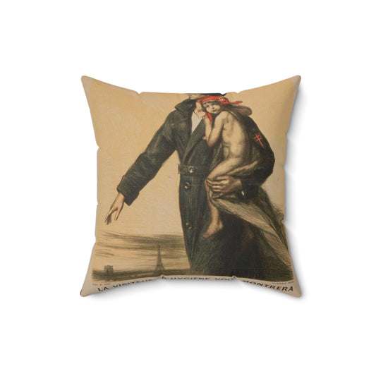 La visiteuse d'hygiéne vous montrera le chemin de la santé. Elle mène une croisade contre la tuberculose et la mortalité infantile. Soutenez-la! Decorative Accent Square Pillow