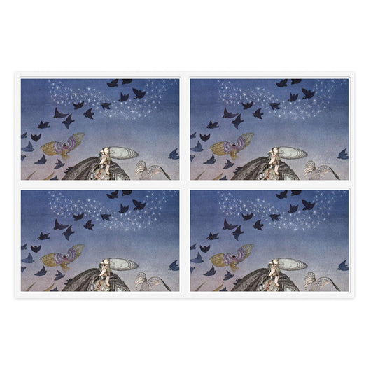 ‘No sooner had he whistled than he heard a whizzing and a whirring from all quarters, and such a large flock of birds swept down that they blackened all the field in which they settled’ (6278219321) Laminated UV Protective Vinyl Stickers