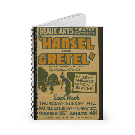 "Hansel and Gretel," the gingerbread children by Humperdinck Music, animals, dancing, songs. Spiral Bound Ruled Notebook with Printed Cover