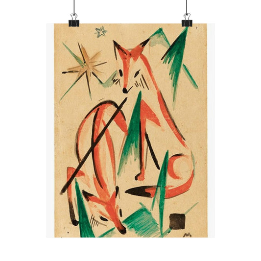Franz Marc Füchse 1913 - A painting of a fox and a star High Quality Matte Wall Art Poster for Home, Office, Classroom