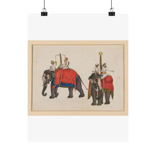 Two elephants carrying the fish and sun insignia of Mughal sovereignty High Quality Matte Wall Art Poster for Home, Office, Classroom