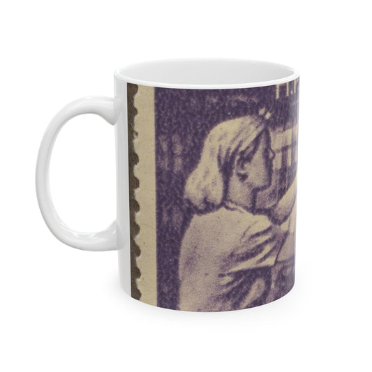Frimärke ur Gösta Bodmans filatelistiska motivsamling, påbörjad 1950.Frimärke från Bulgarien, 1949. Motiv av textilarbetare vid spinnmaskin. "Serie: Honör för unga yrkesarbetare". Beautiful Novelty Ceramic Coffee Mug 11oz