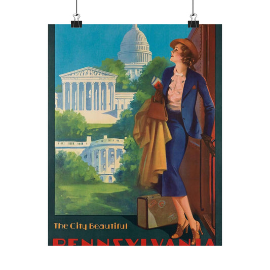 Washington—The City Beautiful, Pennsylvania Railroad poster, artwork by Edward Mason Eggleston High Quality Matte Wall Art Poster for Home, Office, Classroom