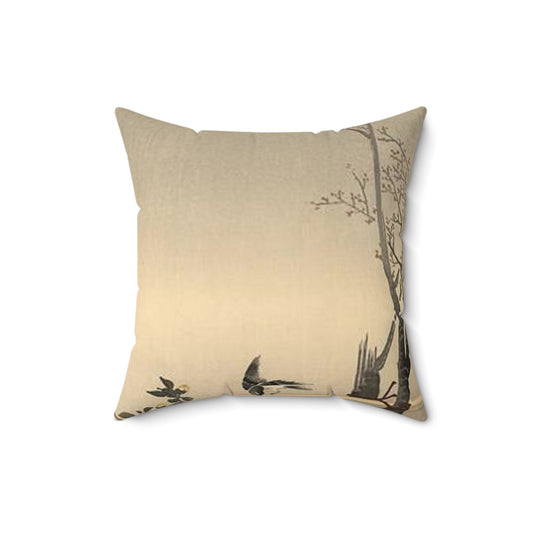 Koson - stonechat, Ohara Koson Decorative Accent Square Pillow