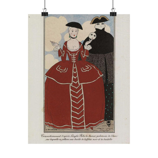 Fancy dress (Travestissement d'aprés Longhi - Robe de damas galonnée de blanc sur laquelle on jettera une baiite de taffetas noir et de dentelle) (CBL WEp 0847) High Quality Matte Wall Art Poster for Home, Office, Classroom