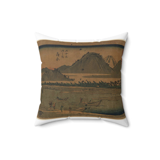 Utagawa Hiroshige - Kanbara, Andō Hiroshige, depicting Mount Fuji Decorative Accent Square Pillow