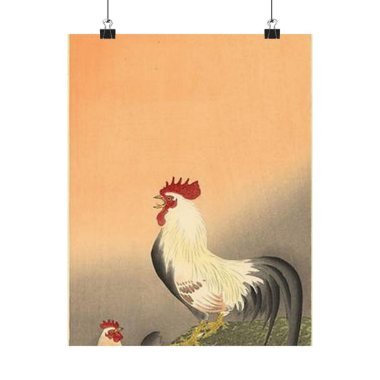 Koson - rooster-and-hen-at-sunrise, Ohara Koson High Quality Matte Wall Art Poster for Home, Office, Classroom