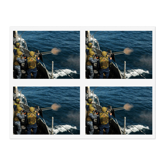 US Navy 110514-N-YM590-214 Gunner's Mate 2nd Class Charles H. Talbert fires a .50-caliber machine gun during a crew-served weapons certification ex Laminated UV Protective Vinyl Stickers