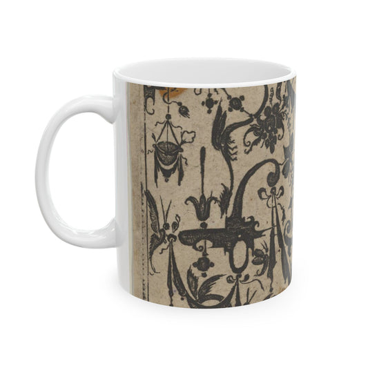 Blackwork Print with a Trophy at Center Surrounded by Grotesques and Swag Drapery Beautiful Novelty Ceramic Coffee Mug 11oz
