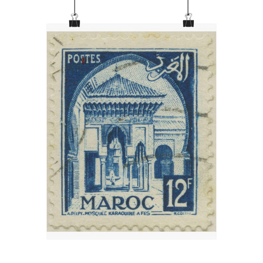 Frimärke ur Gösta Bodmans filatelistiska motivsamling, påbörjad 1950.Frimärke från Franska Marocko, 1951. Motiv av moskéen Karaouin. High Quality Matte Wall Art Poster for Home, Office, Classroom