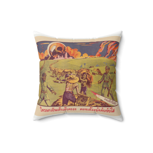 Thai Rice Harvest (PO-19-TH), Cold War American Propaganda poster Decorative Accent Square Pillow
