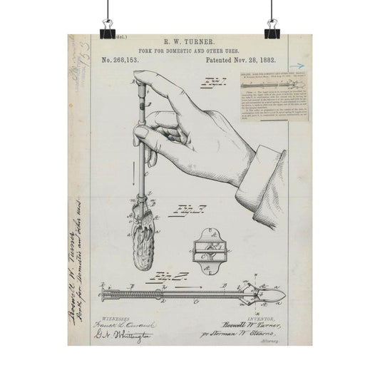 Patent drawing - for R. W. Turner's Fork for Domestic and Other Uses Public domain image High Quality Matte Wall Art Poster for Home, Office, Classroom