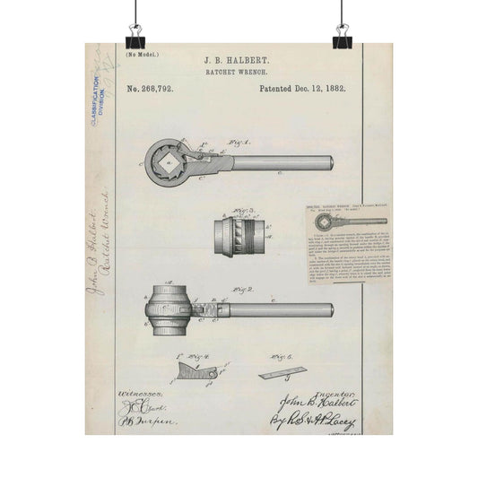 Patent Drawing of Engine - for J. B. Halbert's Ratchet Wrench Public domain image High Quality Matte Wall Art Poster for Home, Office, Classroom