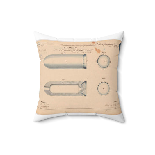 Patent drawing - Drawing of Improvement in Projectiles for Rifled Ordnance Public domain image Decorative Accent Square Pillow