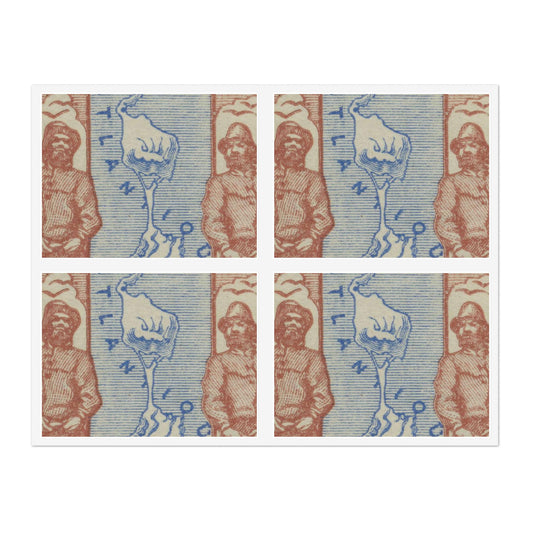 Frimärke ur Gösta Bodmans filatelistiska motivsamling, påbörjad 1950.Frimärke från Saint Pierre et Miquelon 1932. Motiv av karta över Saint Pierre et Miquelon. Fiskare med nät. Laminated UV Protective Vinyl Stickers