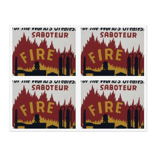 Be on the alert^ for the world's greatest saboteur. Fire. Watch for fire hazards^ - NARA - 535248 Laminated UV Protective Vinyl Stickers