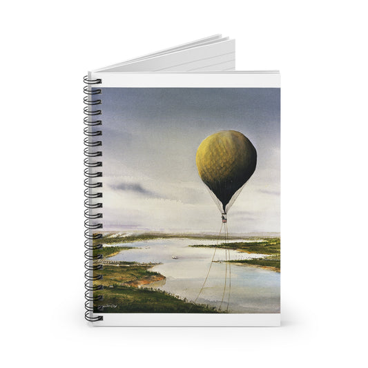 Artwork: "T.S.C. Lowe's Ballon Tethered at 1,000 Feet Above the York River in 1862". Artist: John McCoy Spiral Bound Ruled Notebook with Printed Cover