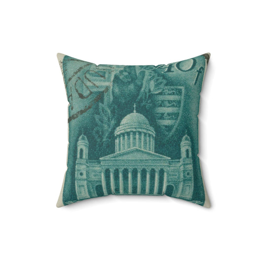Frimärke ur Gösta Bodmans filatelistiska motivsamling, påbörjad 1950.Frimärke från Ungern, 1939. Motiv av Basilikan i Eszergom. Decorative Accent Square Pillow