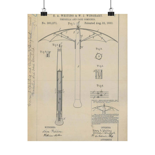Patent drawing - for H. A. Whiting and W. J. Winghart's Umbrella and Cane Combined Public domain image High Quality Matte Wall Art Poster for Home, Office, Classroom