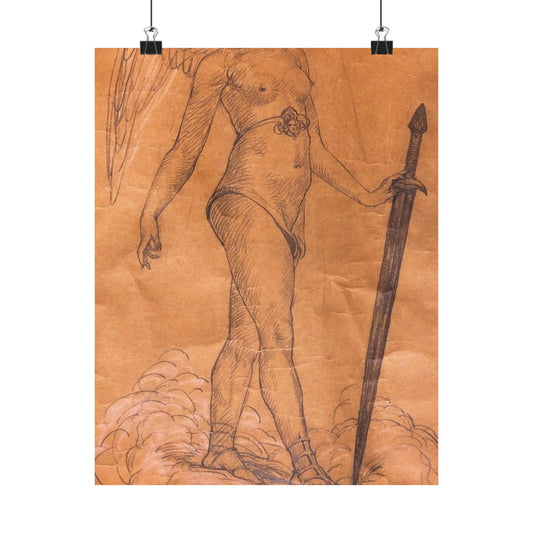 A drawing of an angel holding a sword. Woman breasts sword, beauty fashion. High Quality Matte Wall Art Poster for Home, Office, Classroom