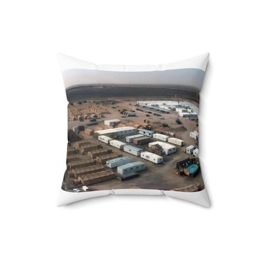 Looking North, living and operations facilities can be seen from the top of a 120-foot tower at Ahmed al Jaber Air Base, Kuwait, during Operation SOUTHERN WATCH 1998 Decorative Accent Square Pillow