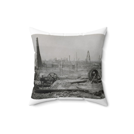Baku. Oil production. - Drawing. Public domain image. Decorative Accent Square Pillow