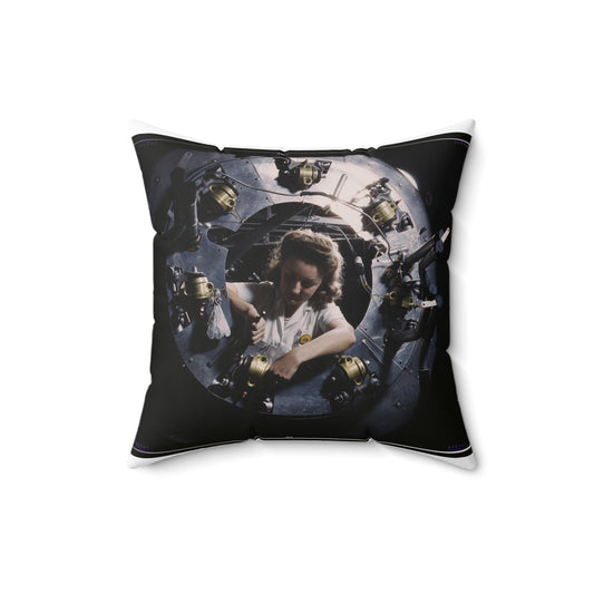 Part of the cowling for one of the motors for a B-25 bomber is assembled in the engine department of North American [Aviation, Inc.]'s Inglewood, Calif., plant Decorative Accent Square Pillow