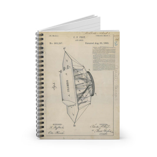 Patent drawing - for C. P. Fest's Air Ship Public domain image Spiral Bound Ruled Notebook with Printed Cover