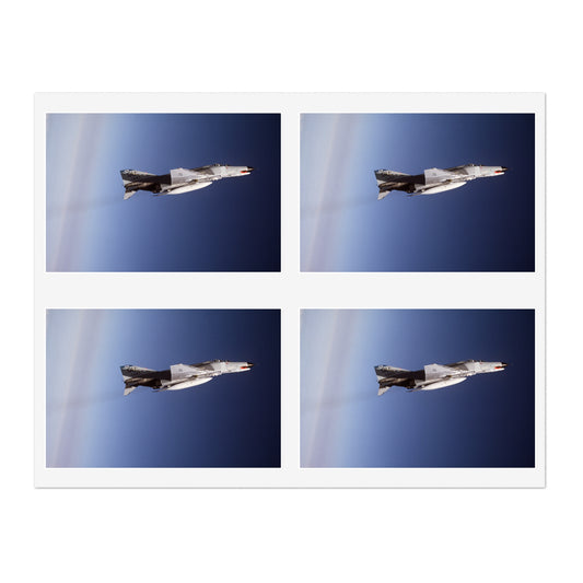 An air-to-air right side view of a 497th Tactical Fighter Squadron F-4E Phantom II aircraft in a vertical climb during Exercise TEAM SPIRIT'86. The aircraft is armed with an AIM-9 Sidewinder missile Laminated UV Protective Vinyl Stickers