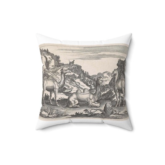 Adriaen Collaert - Dromedarissen en een kameel Decorative Accent Square Pillow