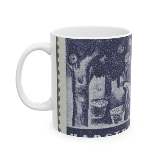 Frimärke ur Gösta Bodmans filatelistiska motivsamling, påbörjad 1950.Frimärke från Bulgarien, 1941. Motiv av äppelskörd. Beautiful Novelty Ceramic Coffee Mug 11oz