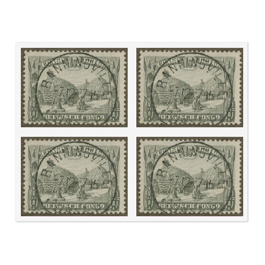 Frimärke ur Gösta Bodmans filatelistiska motivsamling, påbörjad 1950.Hydda i Kraal i Kivu, Kongo. Motiv från Bengaliska Congo 1932. Laminated UV Protective Vinyl Stickers