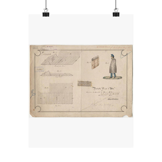 Patent drawing - Drawing of Portable Tent and Abri Public domain image High Quality Matte Wall Art Poster for Home, Office, Classroom