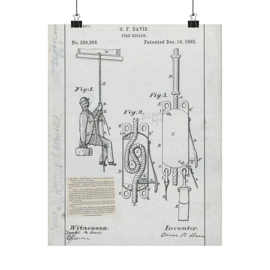 Patent Drawing of Engine - for O. F. Davis' Fire Escape Public domain image High Quality Matte Wall Art Poster for Home, Office, Classroom