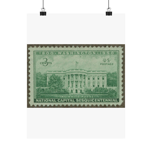 Frimärke ur Gösta Bodmans filatelistiska motivsamling, påbörjad 1950.Frimärke från USA, 1950. Motiv av Vita Huset i Washington District of Colombia, presidentens bostad. "150-årsminne". High Quality Matte Wall Art Poster for Home, Office, Classroom