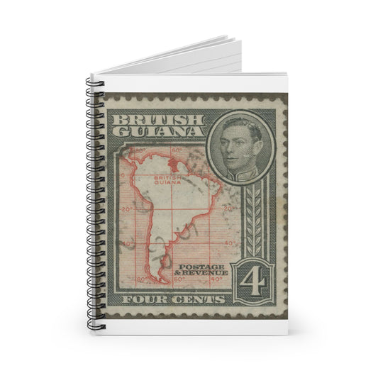 Frimärke ur Gösta Bodmans filatelistiska motivsamling, påbörjad 1950.Frimärke från Brittiska Guiana, 1938. Motiv av Sydamerikas karta med Brittiska Guiana. Spiral Bound Ruled Notebook with Printed Cover