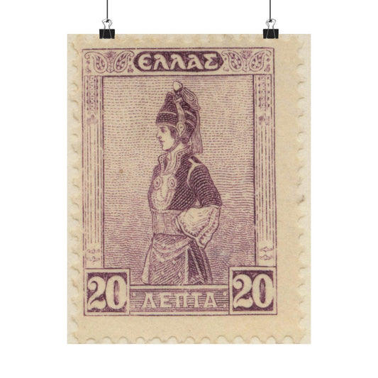 Frimärke ur Gösta Bodmans filatelistiska motivsamling, påbörjad 1950.Frimärke från GRekland, 1927. Motiv av Mecedonisk dräkt. High Quality Matte Wall Art Poster for Home, Office, Classroom