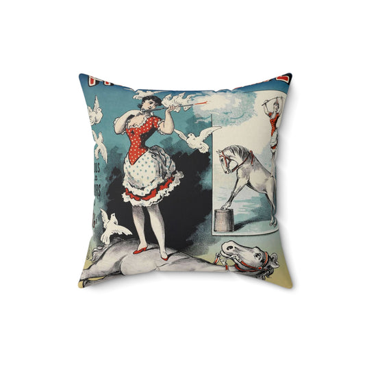 HIPPODROME/ TOUS/ LES/ SOIRS/ A/ 8 1/2h./ JENNY O'BRIEN/ ET SES PIGEONS Decorative Accent Square Pillow