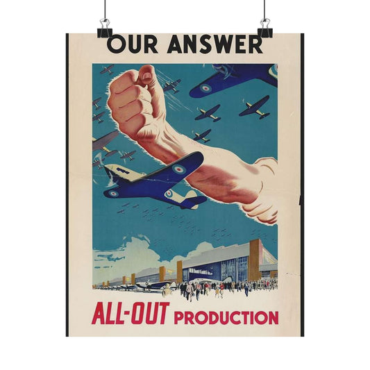 Our Answer All-Out Production, Canada, WWII Propaganda Poster High Quality Matte Wall Art Poster for Home, Office, Classroom