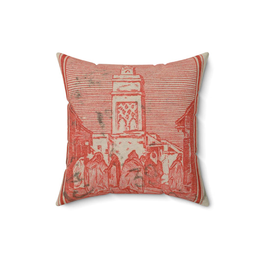 Frimärke ur Gösta Bodmans filatelistiska motivsamling, påbörjad 1950.Frimärke från Franska Marocko, 1939. Motiv av moskéen Salè. Decorative Accent Square Pillow